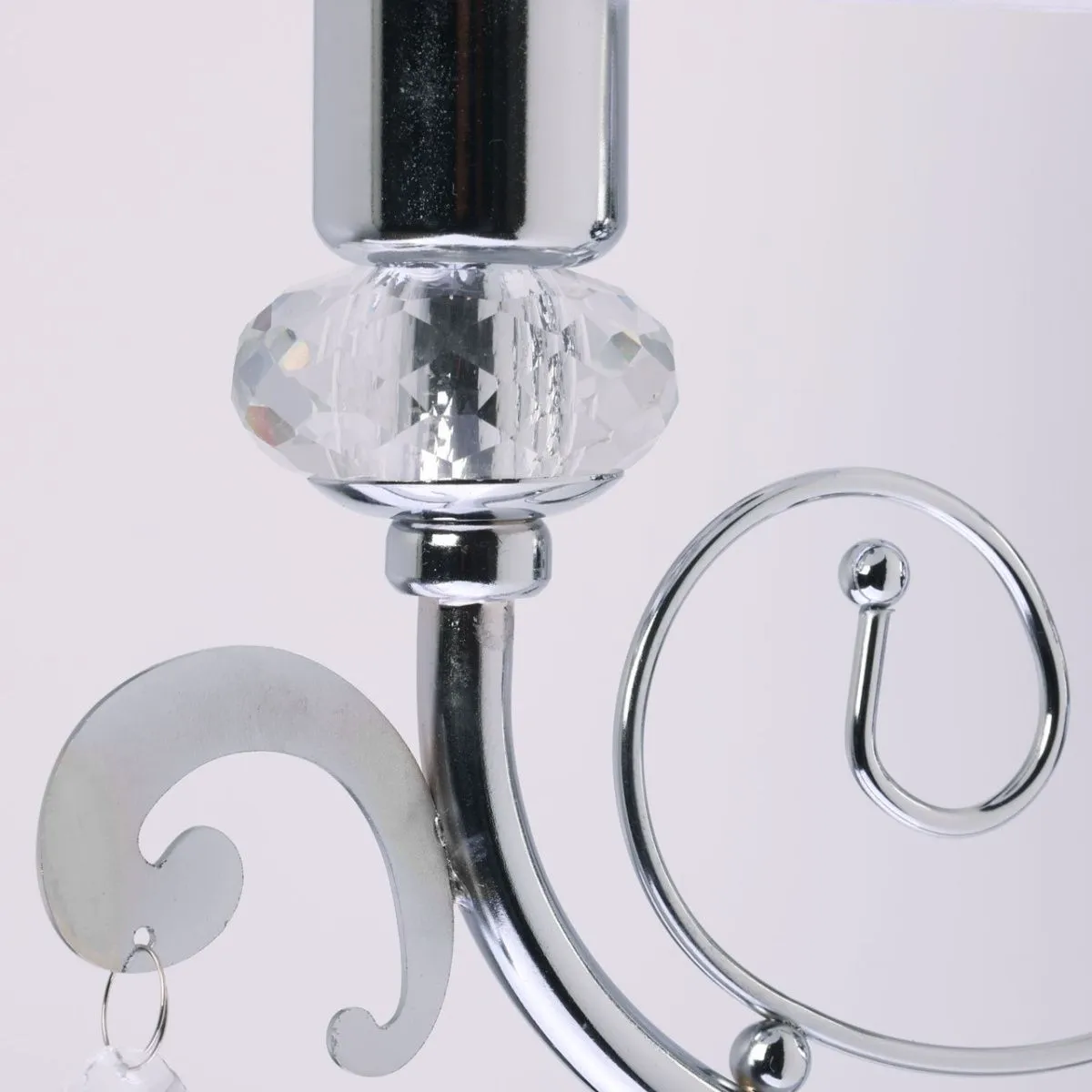Основание/ металл/ хром Абажур/ текстиль, акрил/ белый, прозрачный Декор/ хрусталь/ прозрачный