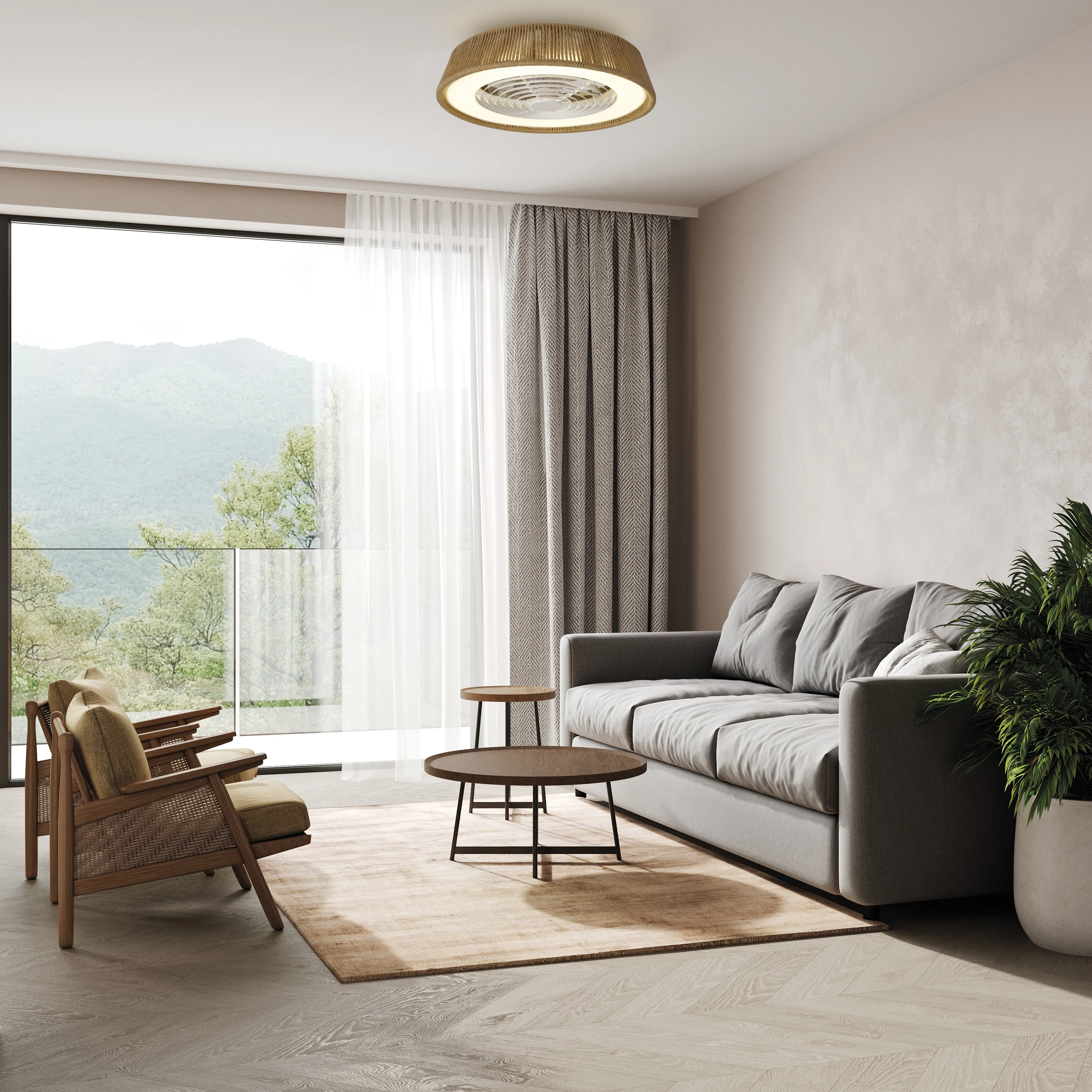 Благодаря возможности устанавливать различные интенсивности света и вентиляции, светильник POLINESIA может быть размещен в больших помещениях, таких как гостиная или офис, кухня или игровая з