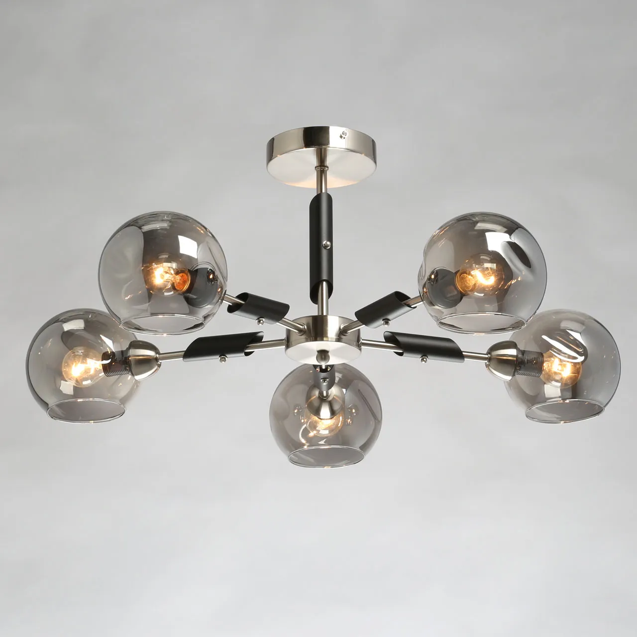 Основание/ металл/ матовый хром, черный цвет Плафоны/ стекло/ дымчатый