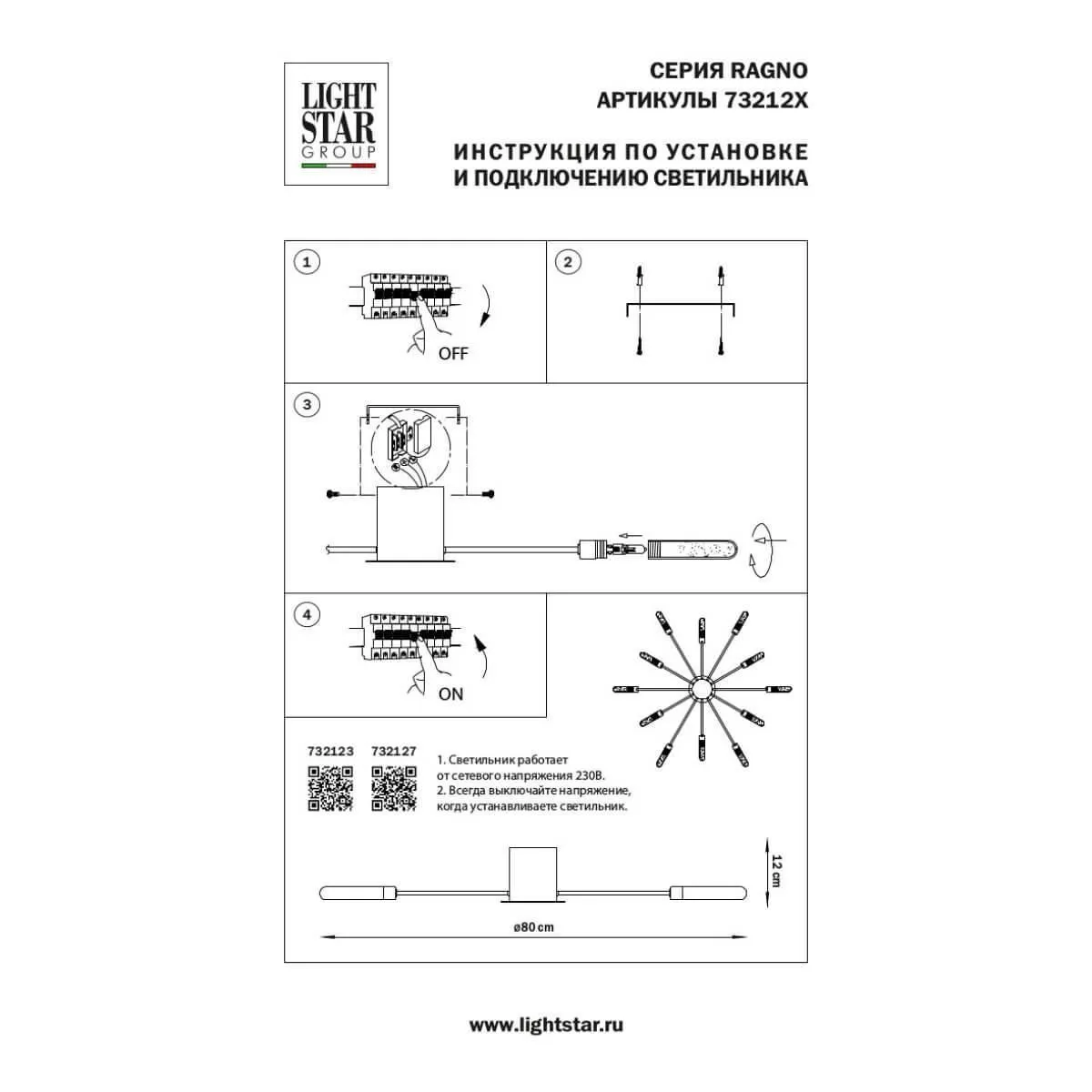 Потолочная люстра Lightstar Ragno 732127 купить в Мытищах по лучшей цене