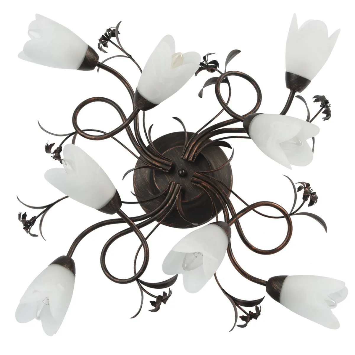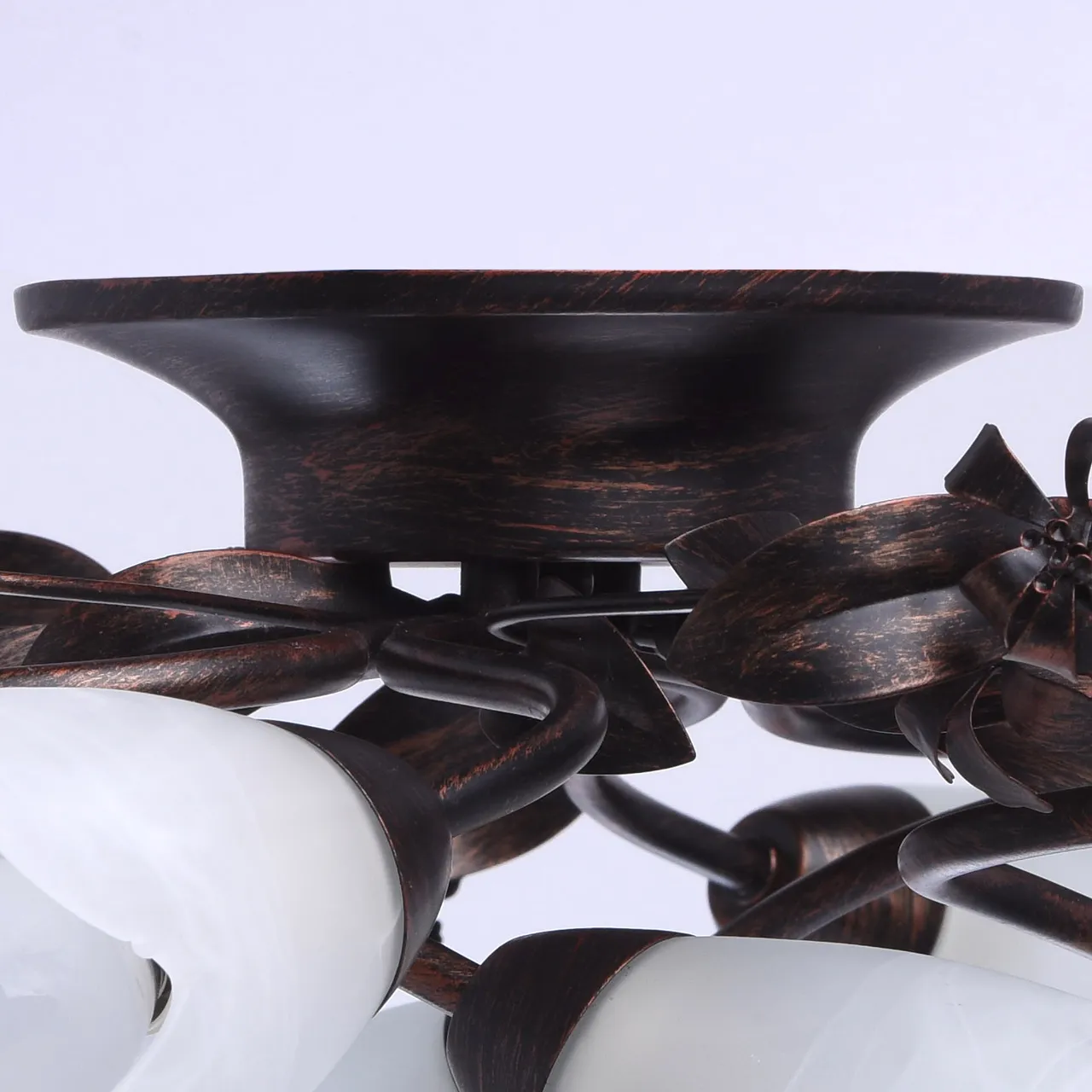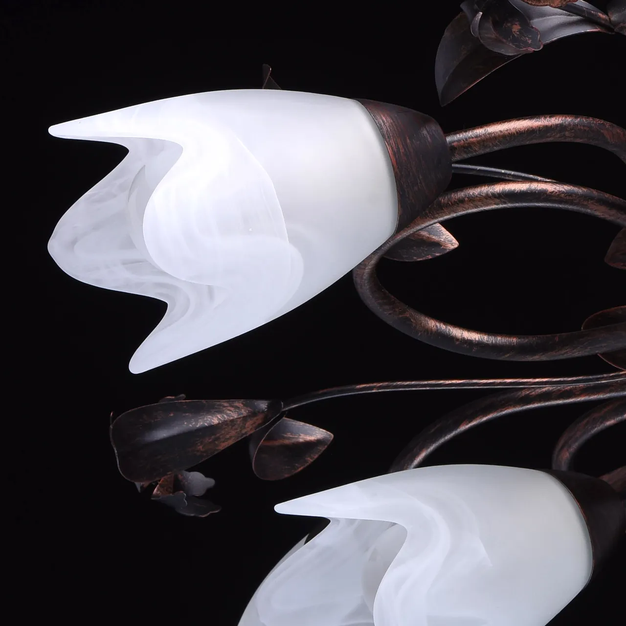 Крашеное металлическое основание, патинированное медью, стеклянные плафоны
