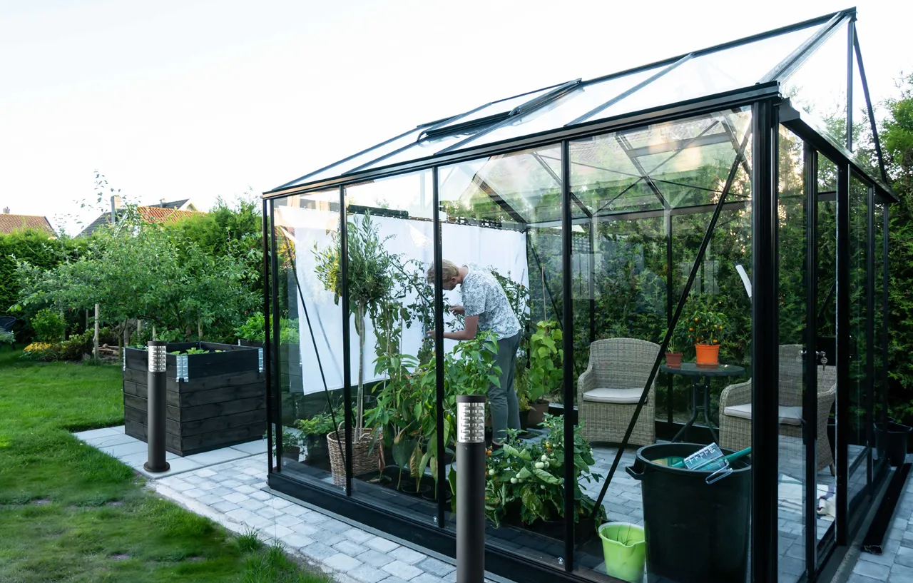 Металлическое основание черного цвета, плафон из стекла